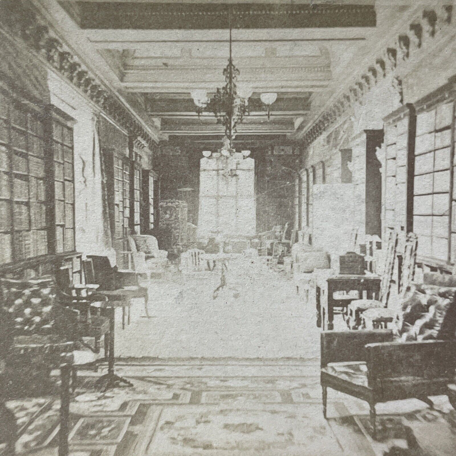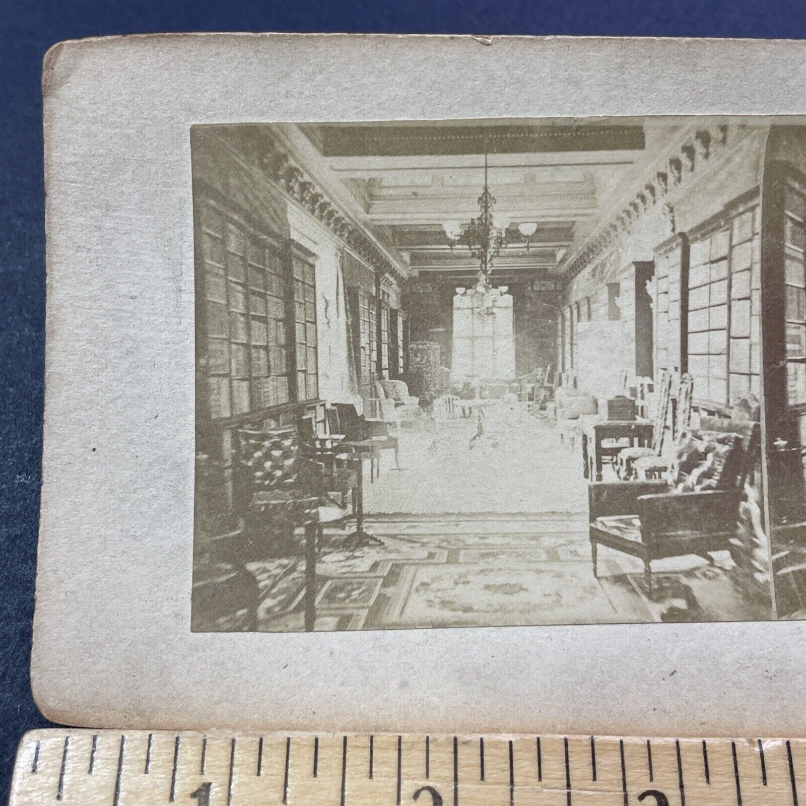 Antique 1870s Holland House Library Before Fire Stereoview Photo Card V3345