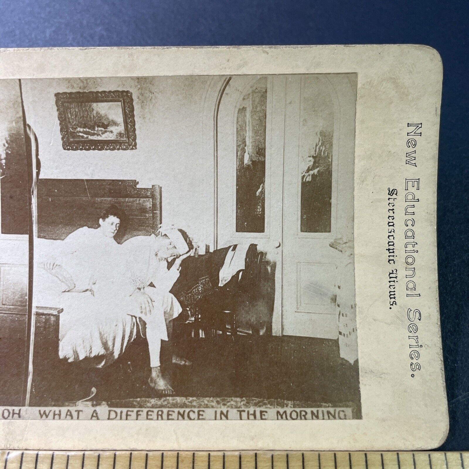 Antique 1870s Man Has A Hangover In Morning Stereoview Photo Card P3384