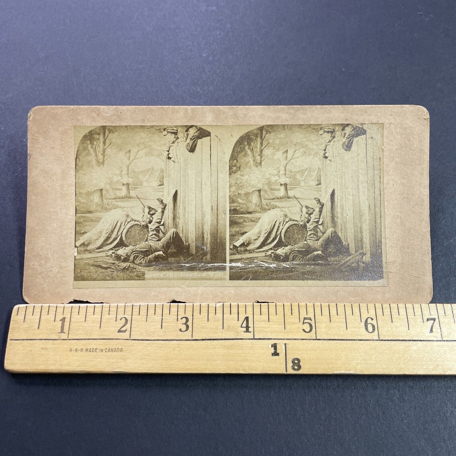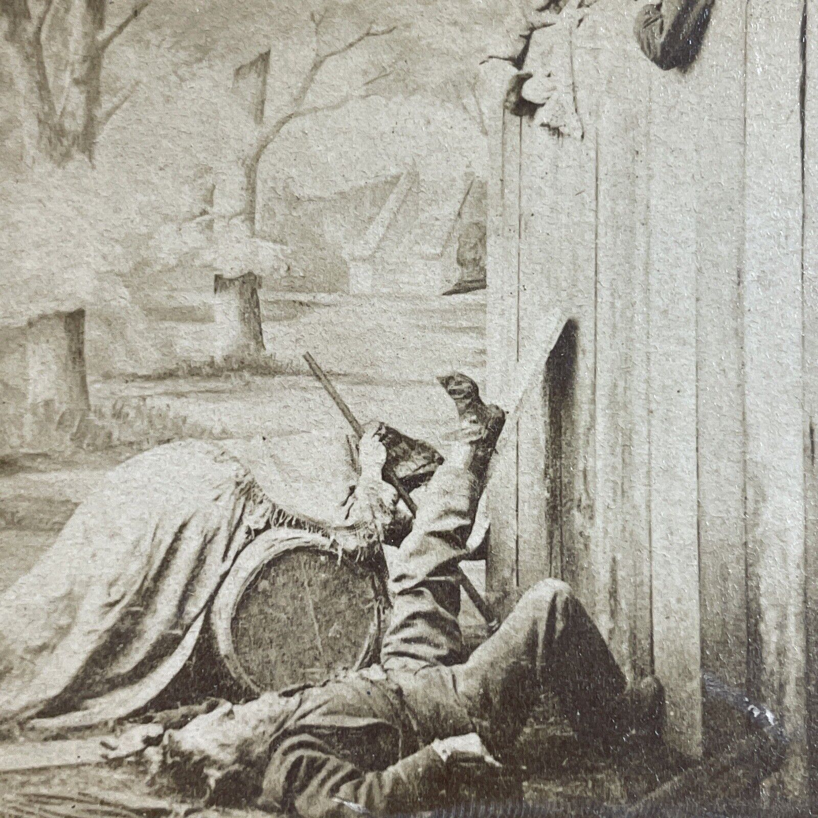 Antique 1870s Man Is Pushed Off Of Fence Stereoview Photo Card P4096