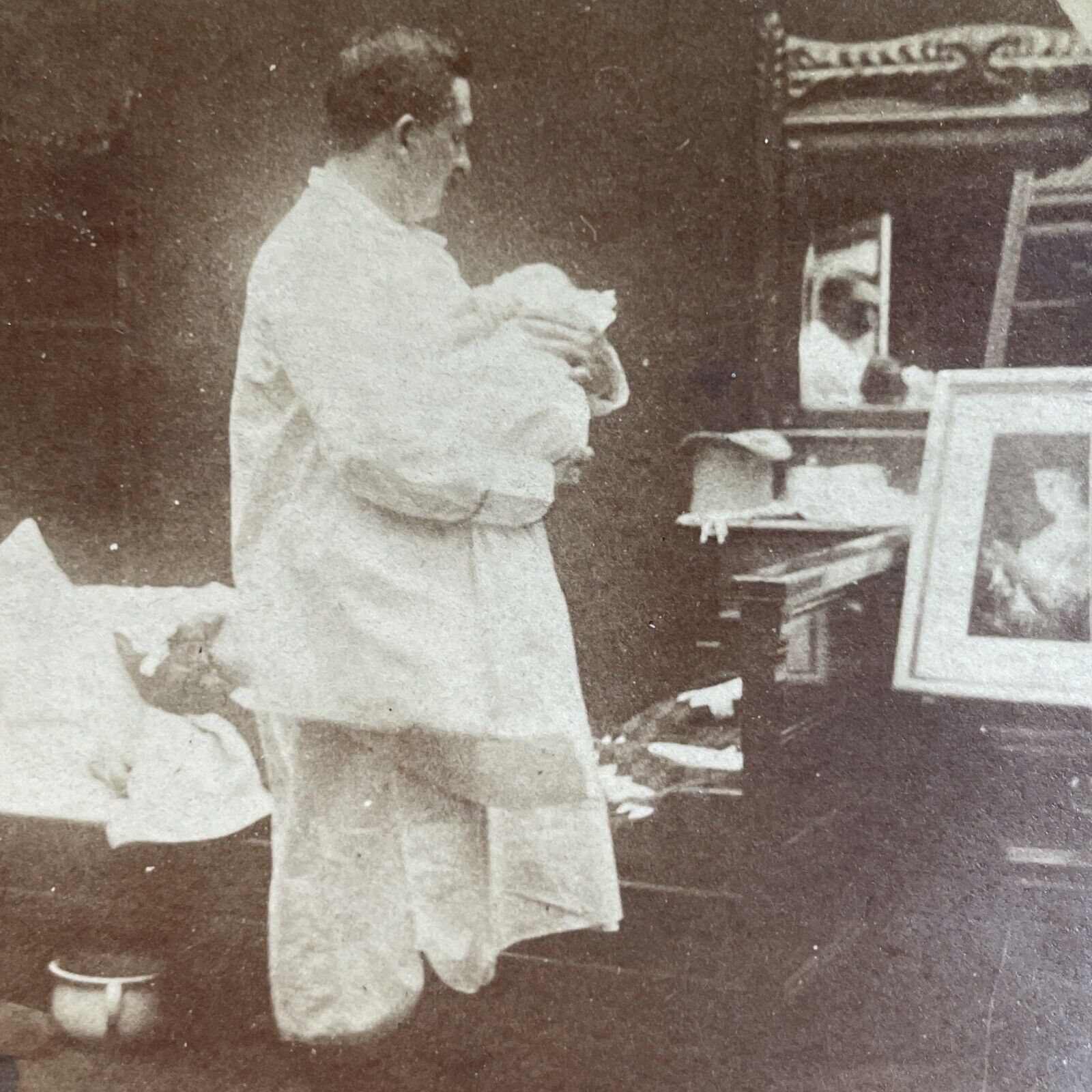 Antique 1870s Man Rocks Baby To Sleep Stereoview Photo Card P3537