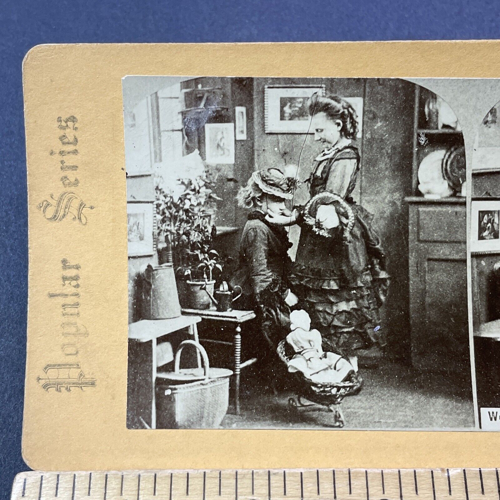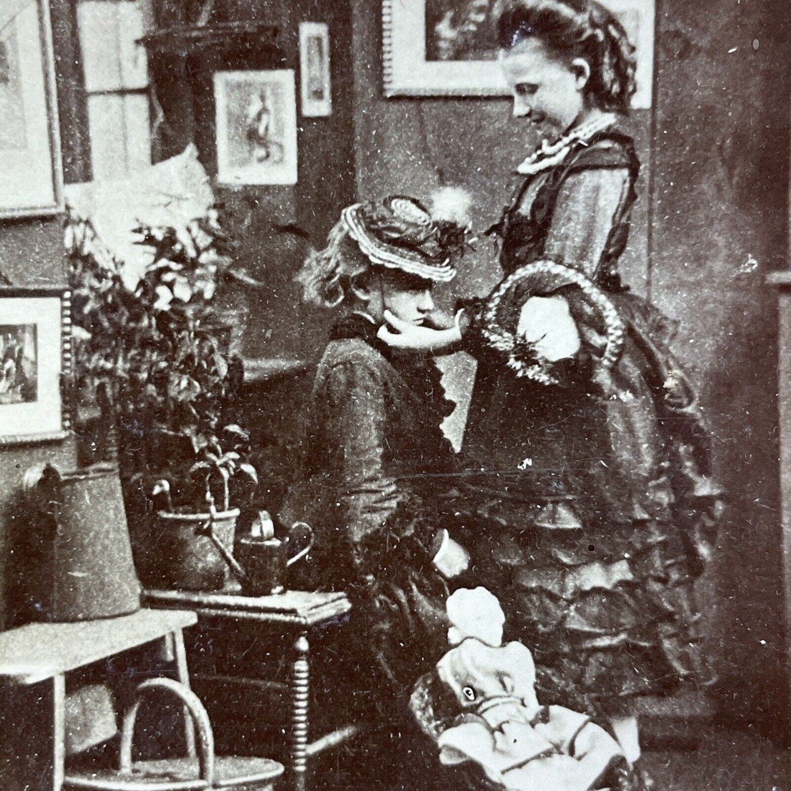 Antique 1870s Teenage Victorian Girls In Dresses Stereoview Photo Card V3274