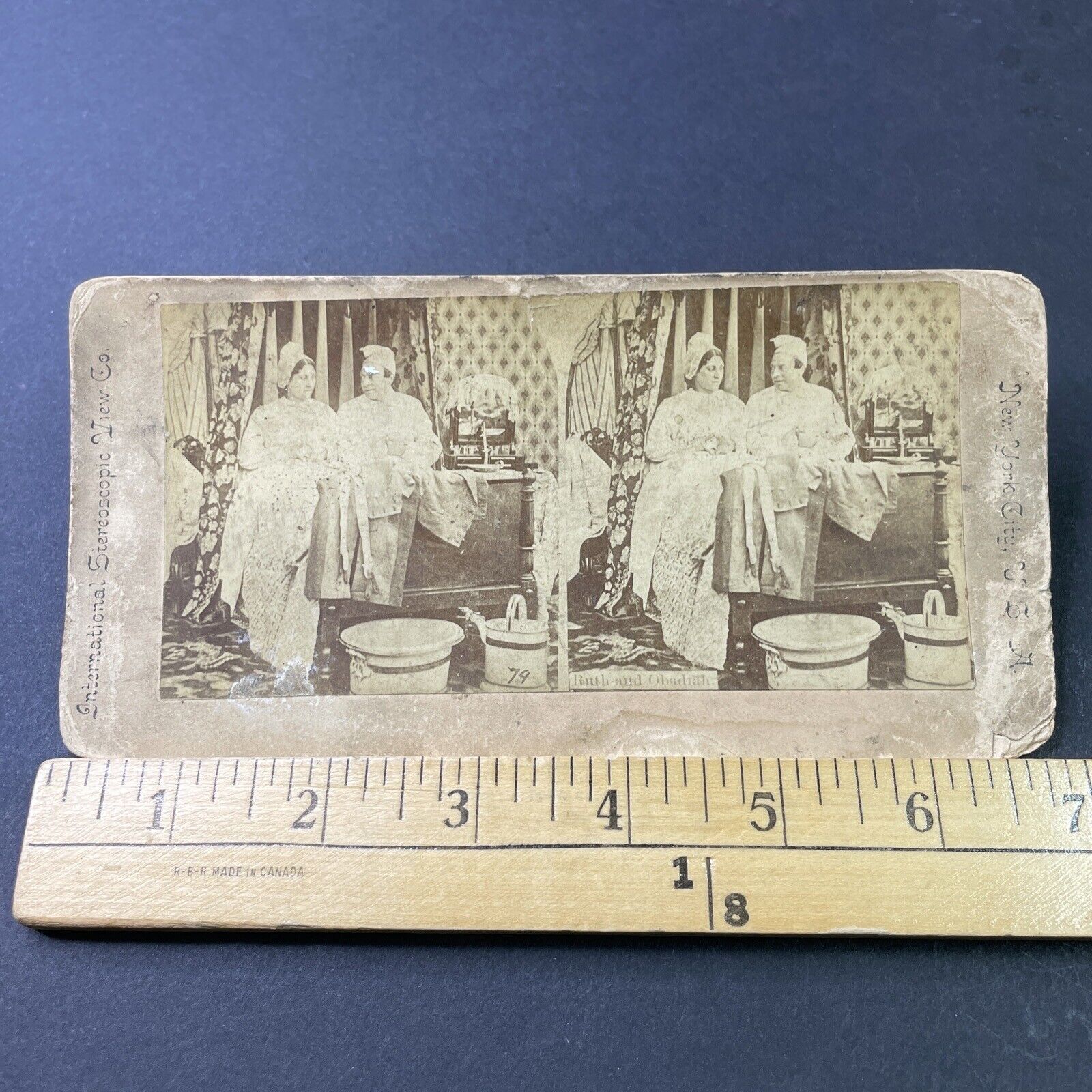 Antique 1870s Victorian Man & Woman In Bed Stereoview Photo Card P3003