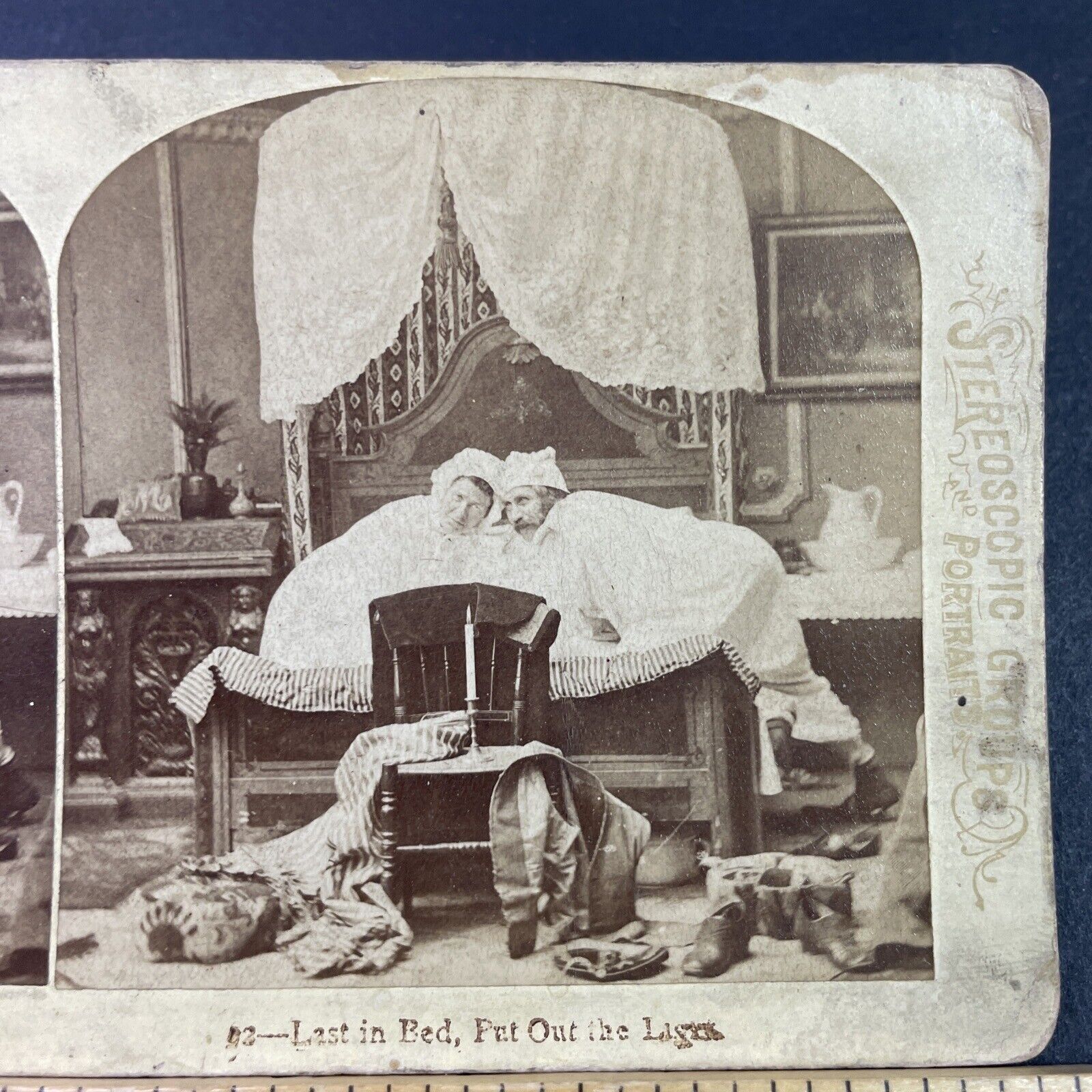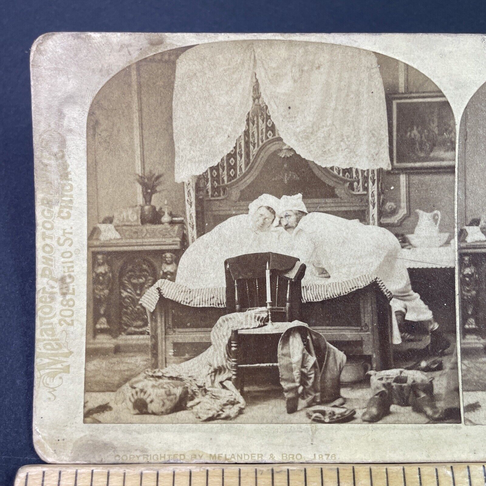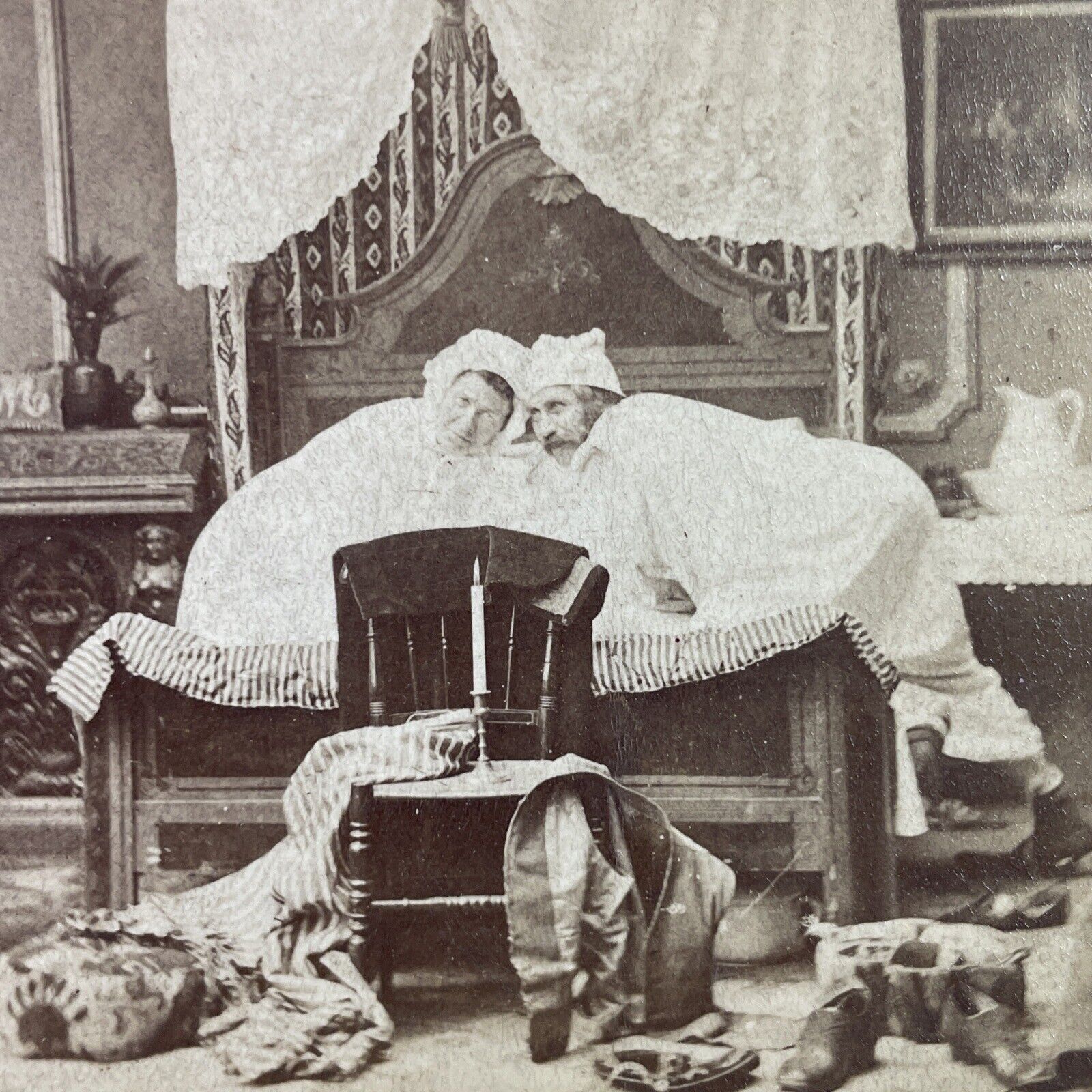 Antique 1876 Married Couple Races Each Other To Bed Stereoview Photo Card P3340