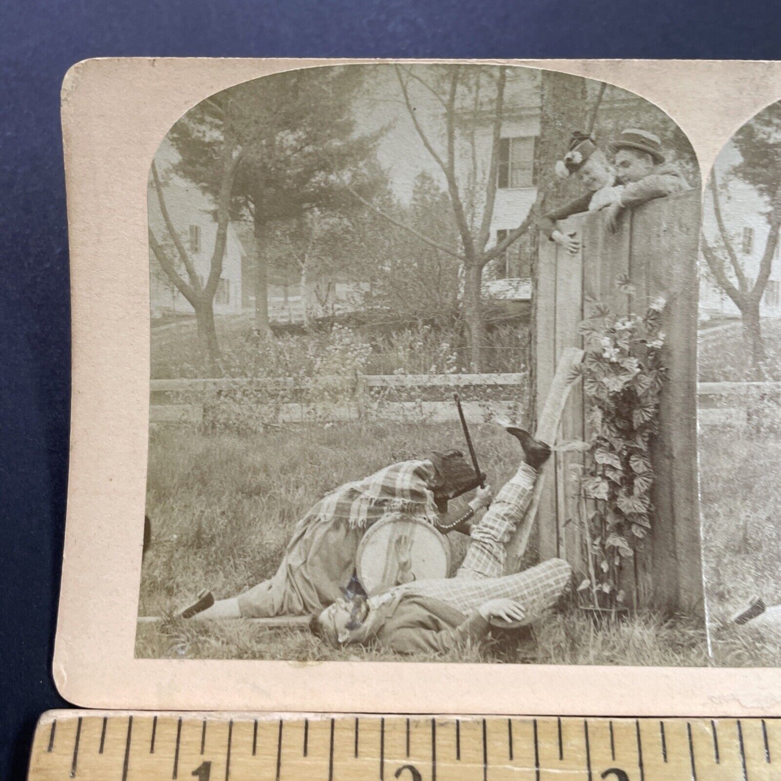 Antique 1880s Man And Woman Fall Off Of Fence Stereoview Photo Card P4116