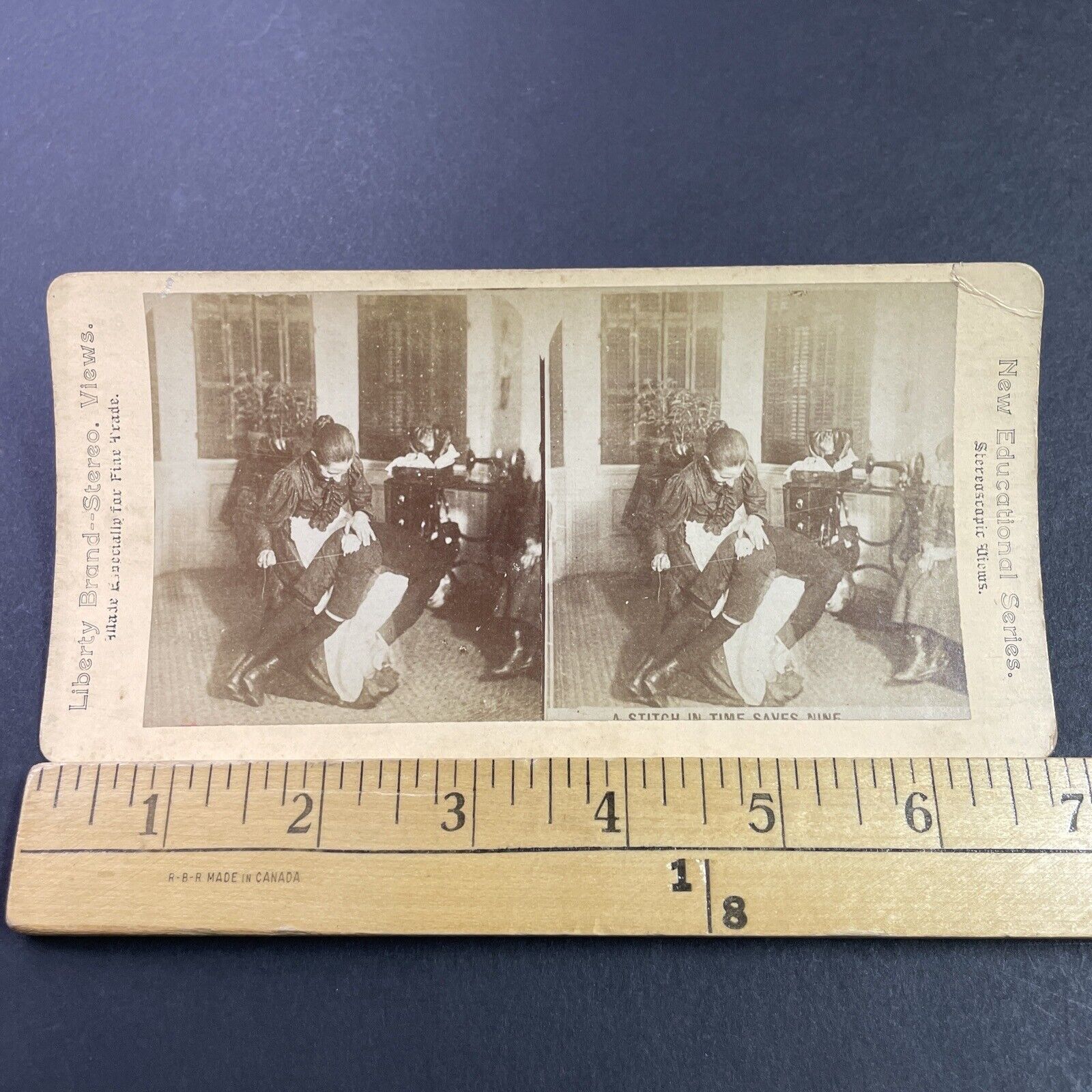 Antique 1880s Mother Stitches A Childs Pants Stereoview Photo Card P3461