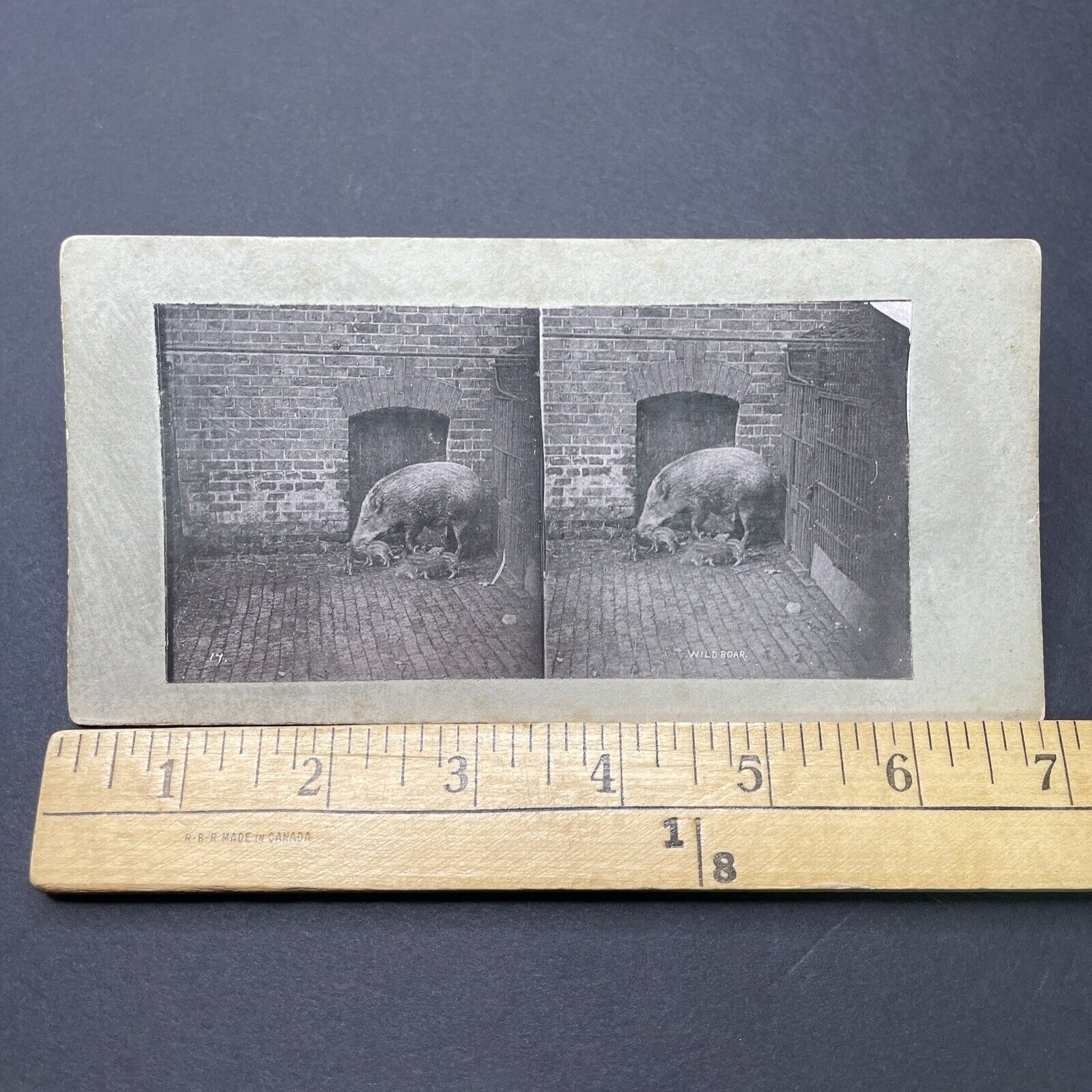 Antique 1880s Wild Boar & Piglets London Zoo Stereoview Photo Card P1681