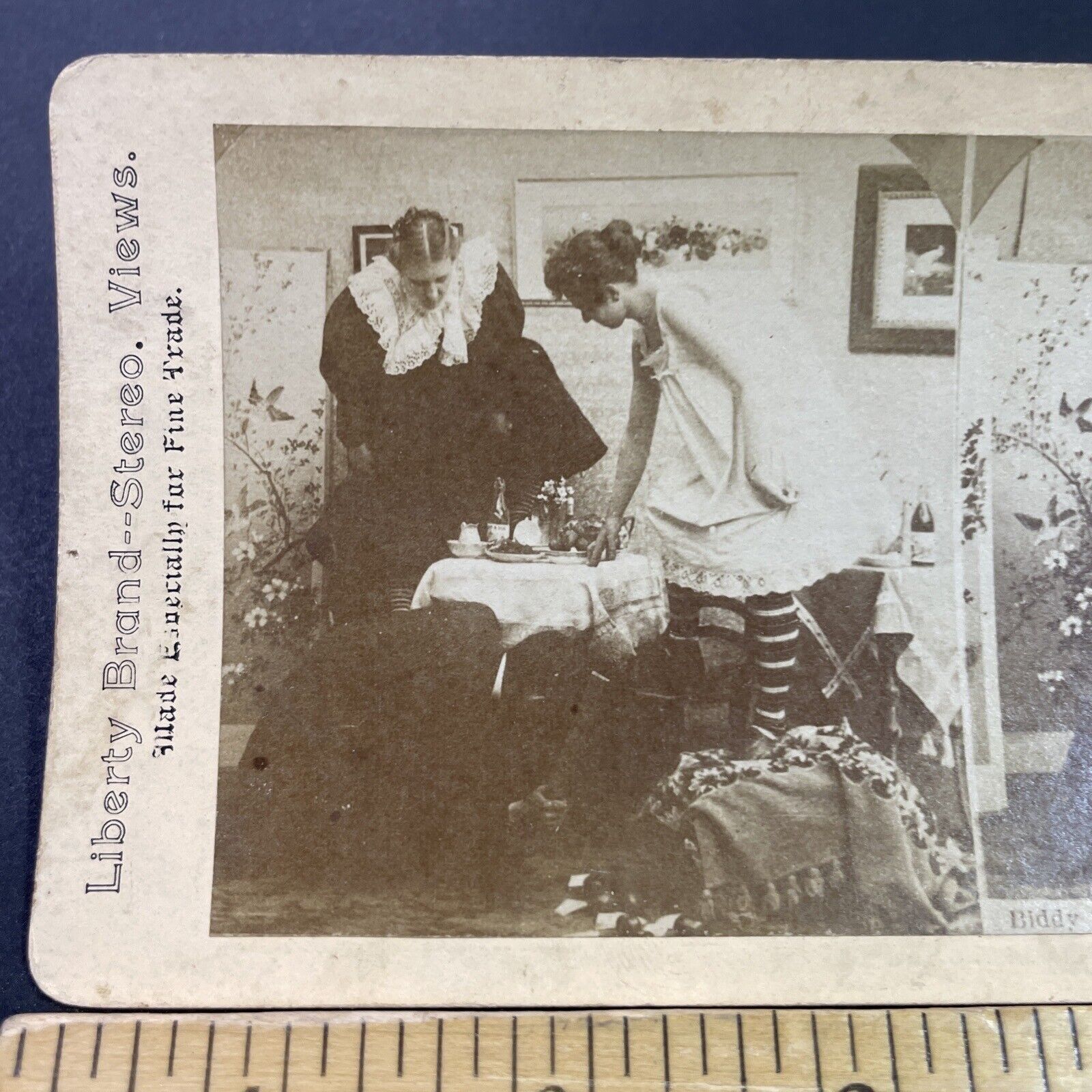 Antique 1880s Women Hide From A Rat At Dinner Stereoview Photo Card P3446