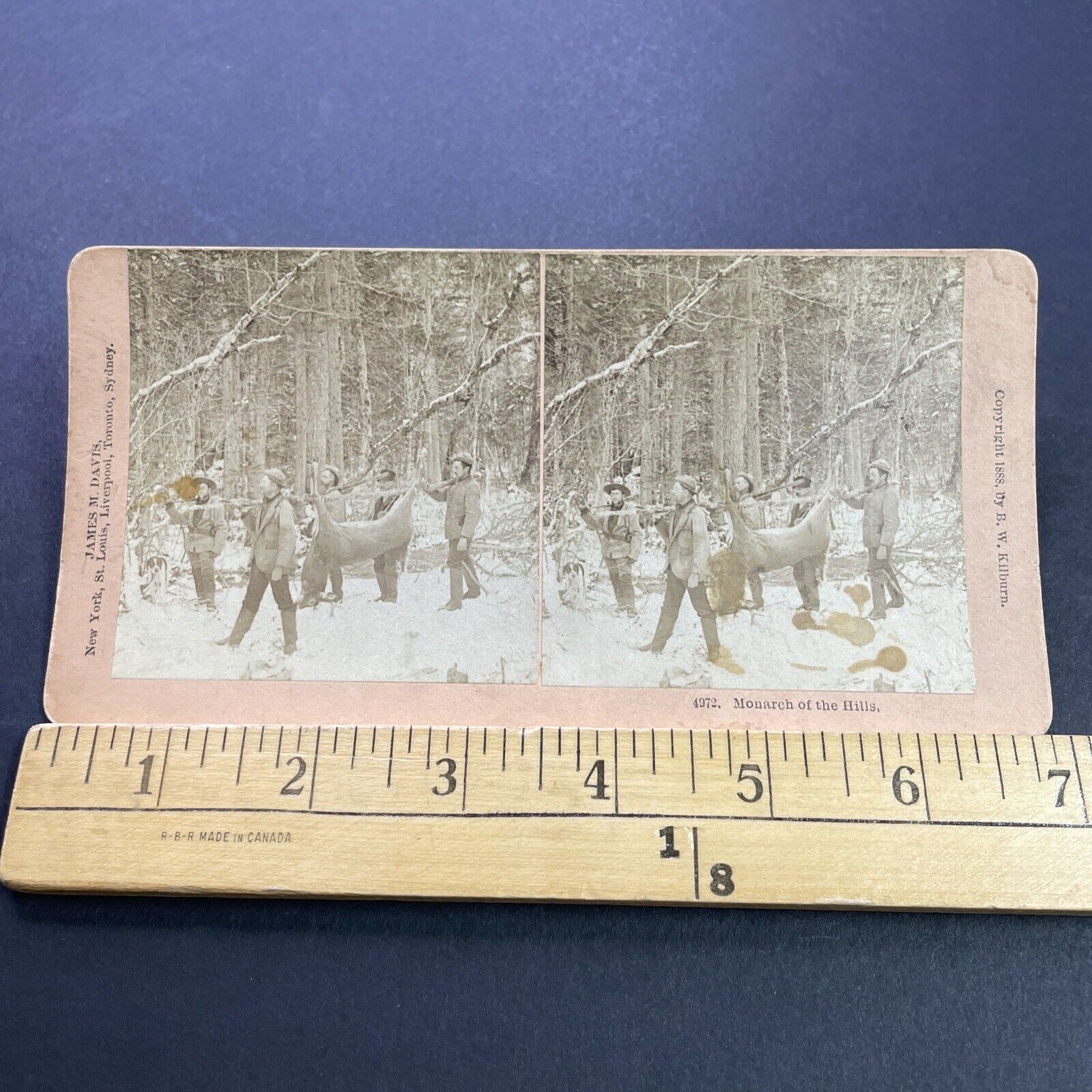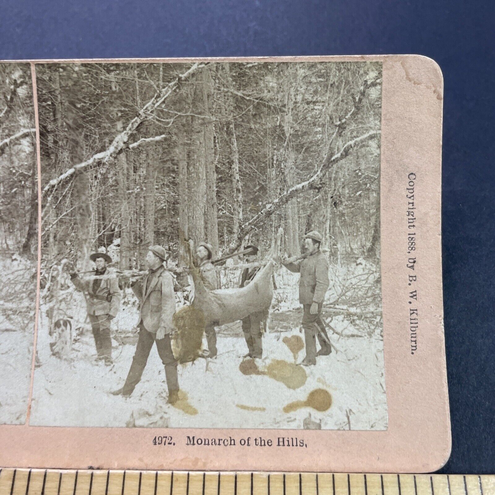 Antique 1888 Men Carry Large Buck Deer Hunting Hunt Stereoview Photo Card P3511