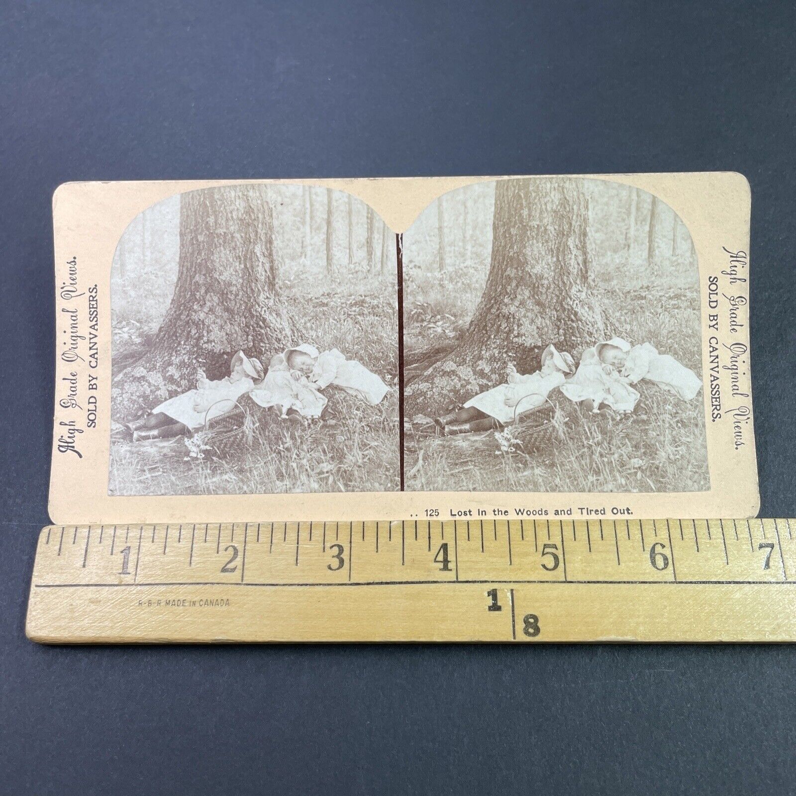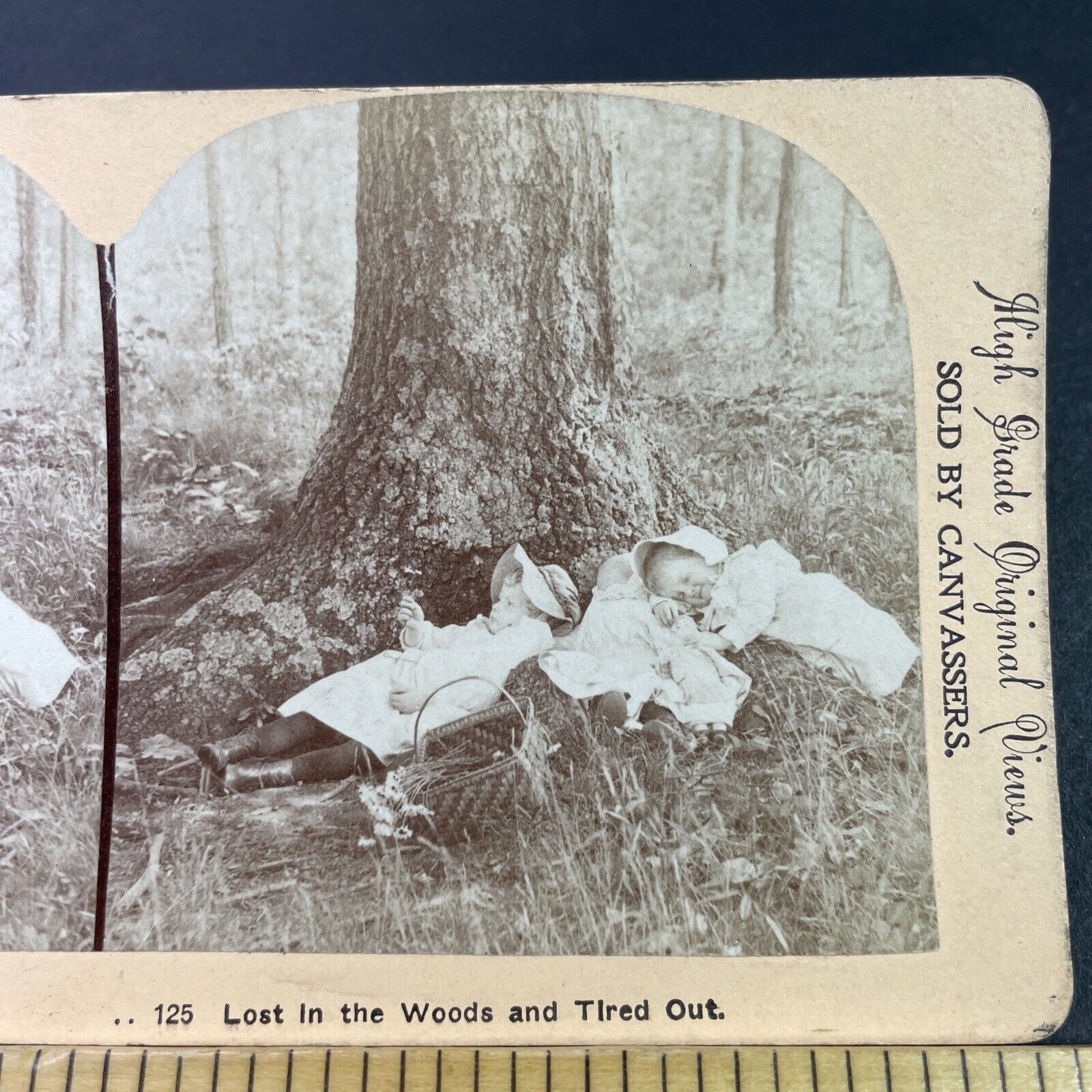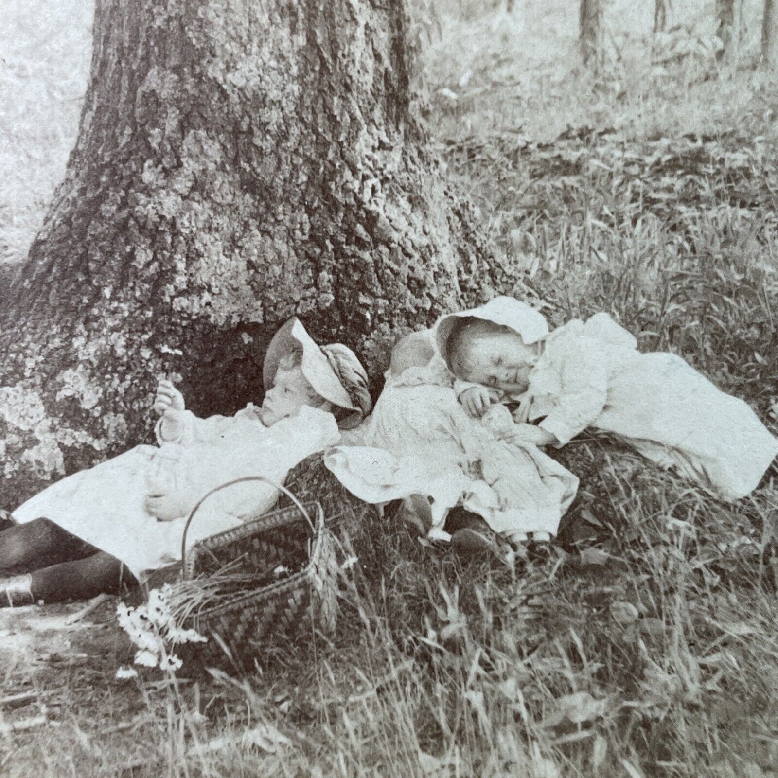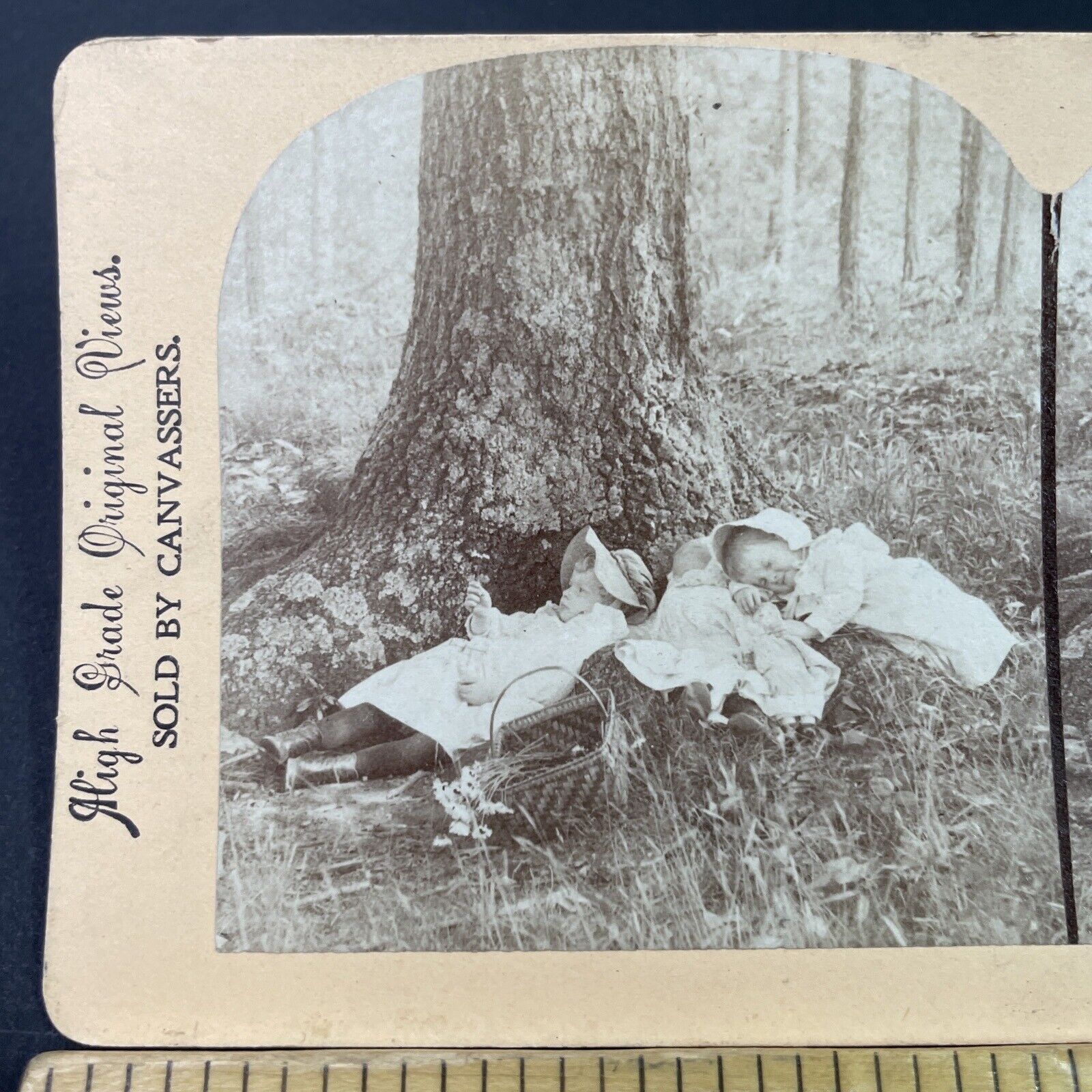 Antique 1890s Babies & Children Fall Asleep In Woods Stereoview Photo Card P3349