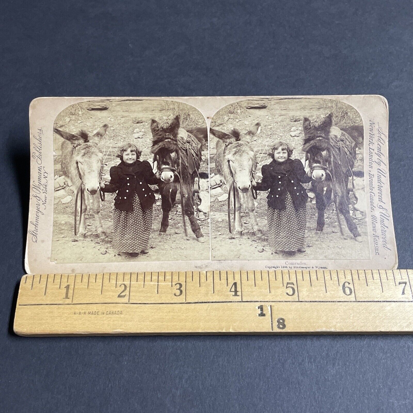 Antique 1894 Little Girl With Two Prize Donkeys Stereoview Photo Card P4317