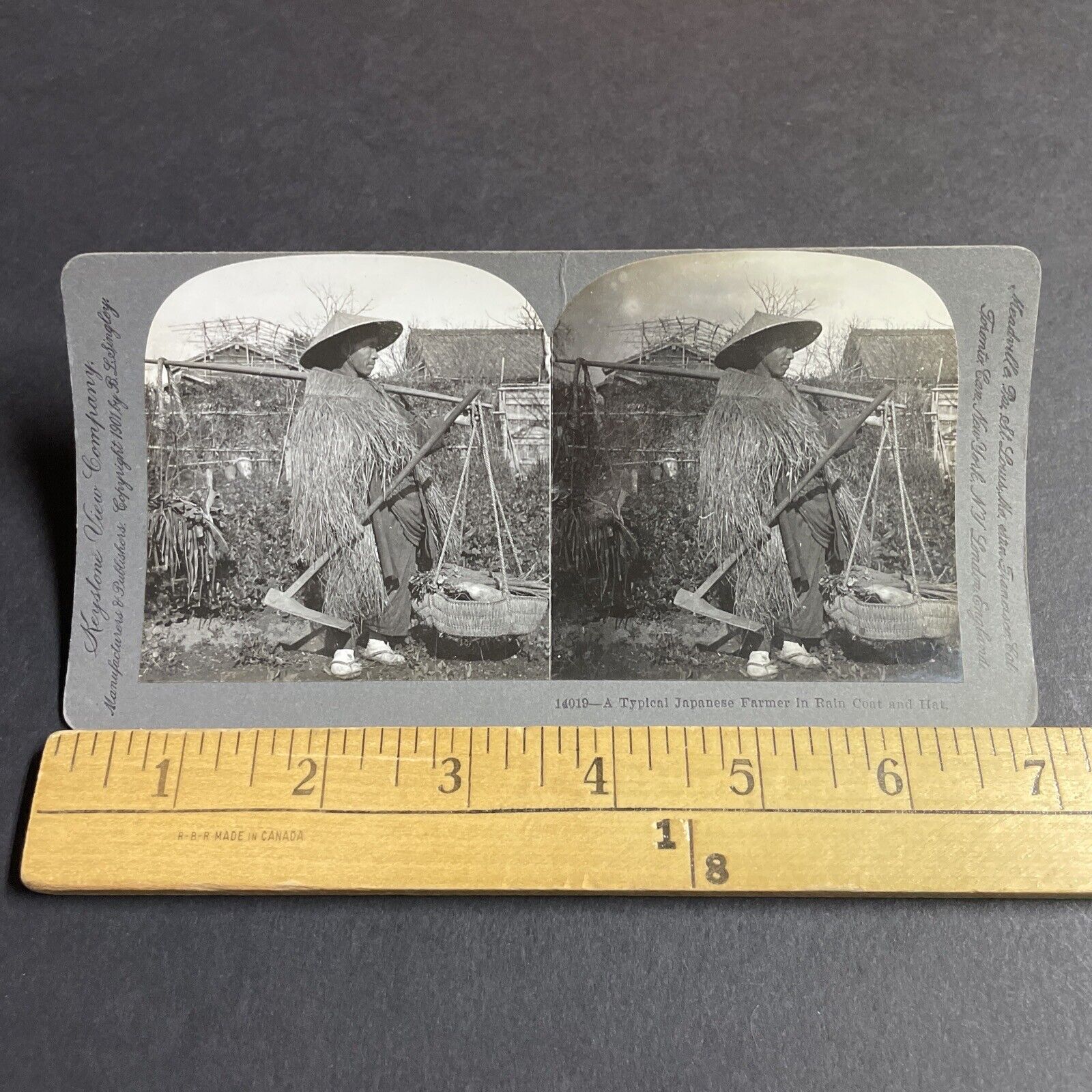 Antique 1901 Man Wears Homemade Raincoat In Japan Stereoview Photo Card P4237