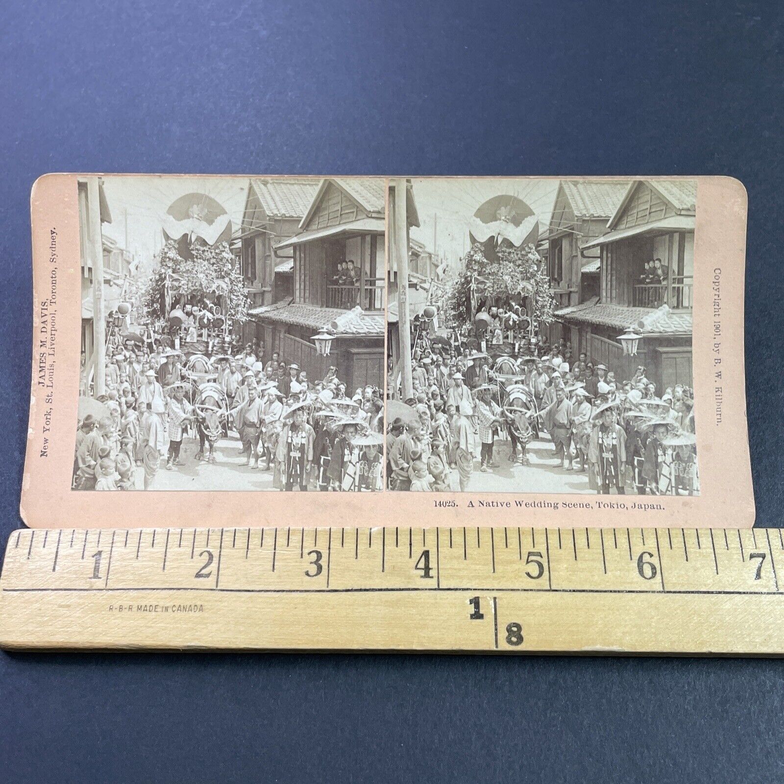 Antique 1901 Traditional Wedding Parade Tokyo Japan Stereoview Photo Card P3775