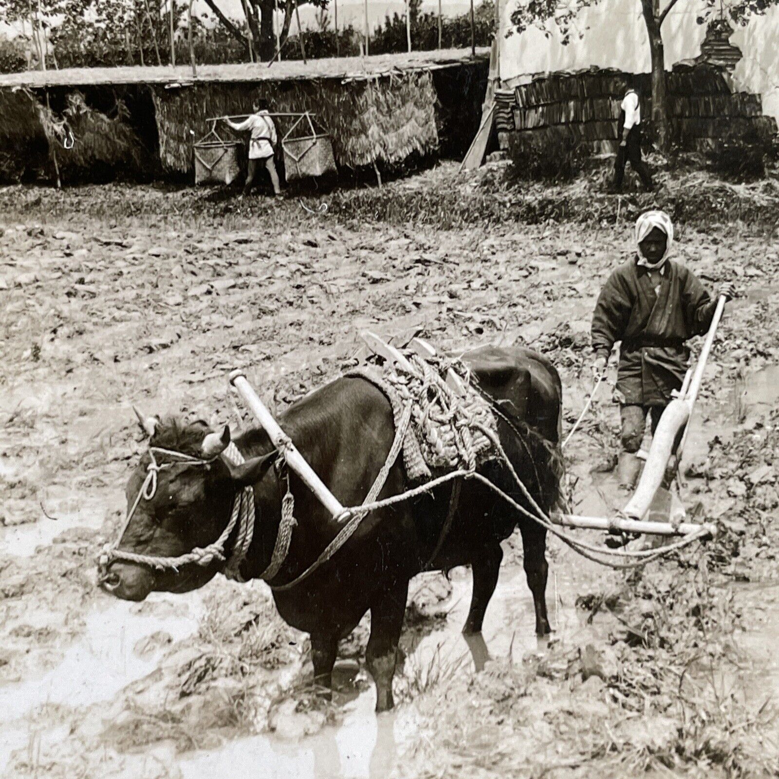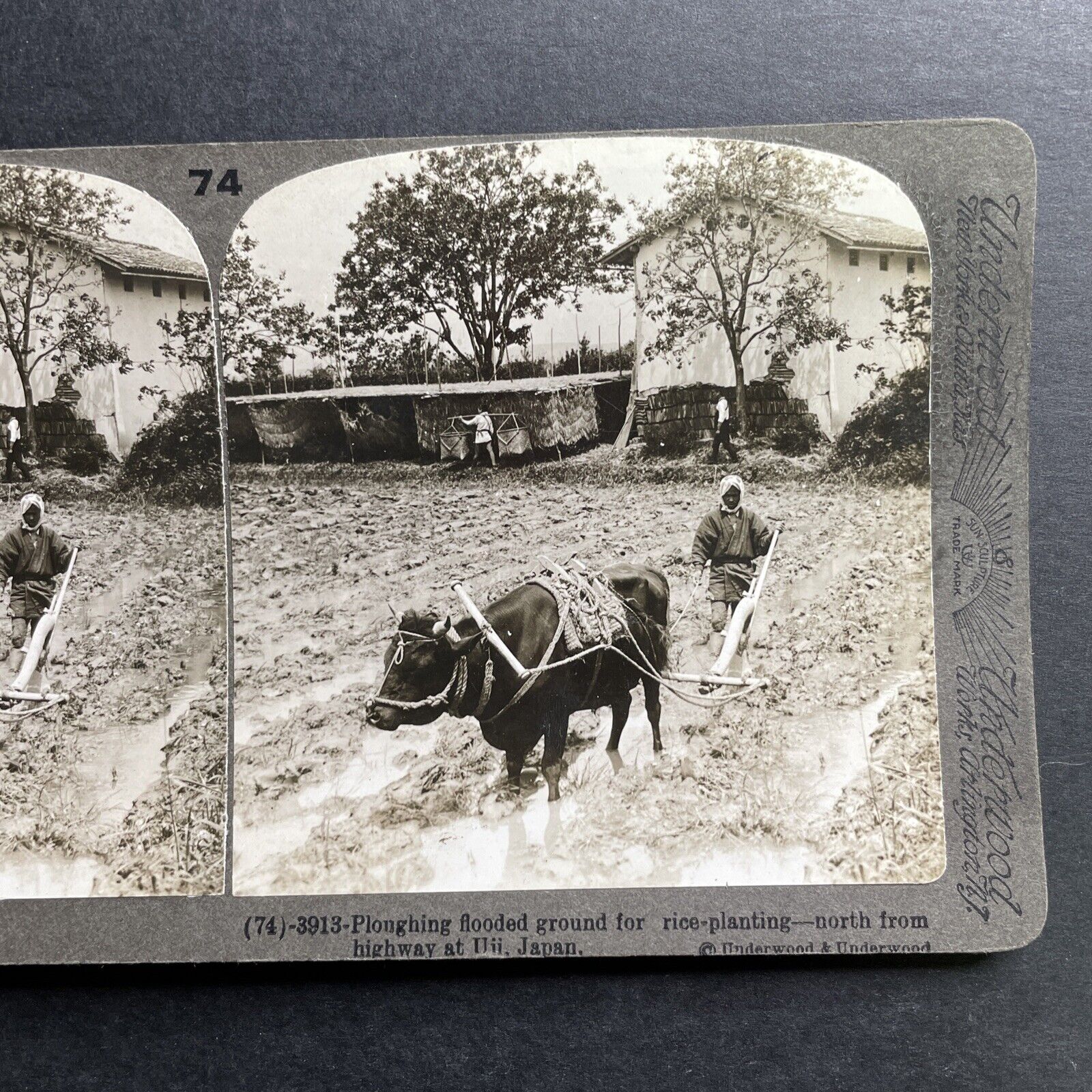 Antique 1903 Farming In Uji Japan Flooded Field Stereoview Photo Card P1480