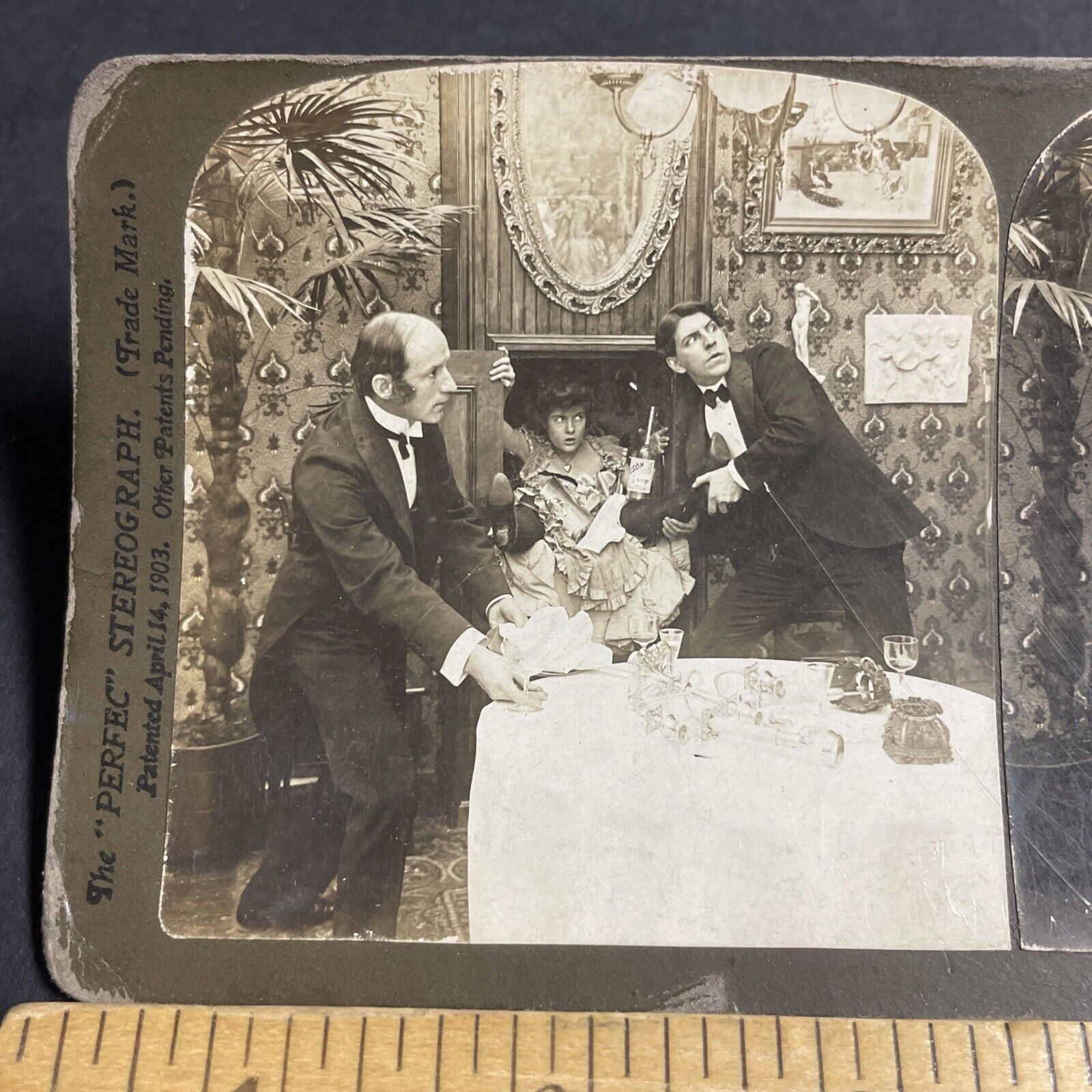 Antique 1903 Man Hides His Mistress In A Closet Stereoview Photo Card P4818