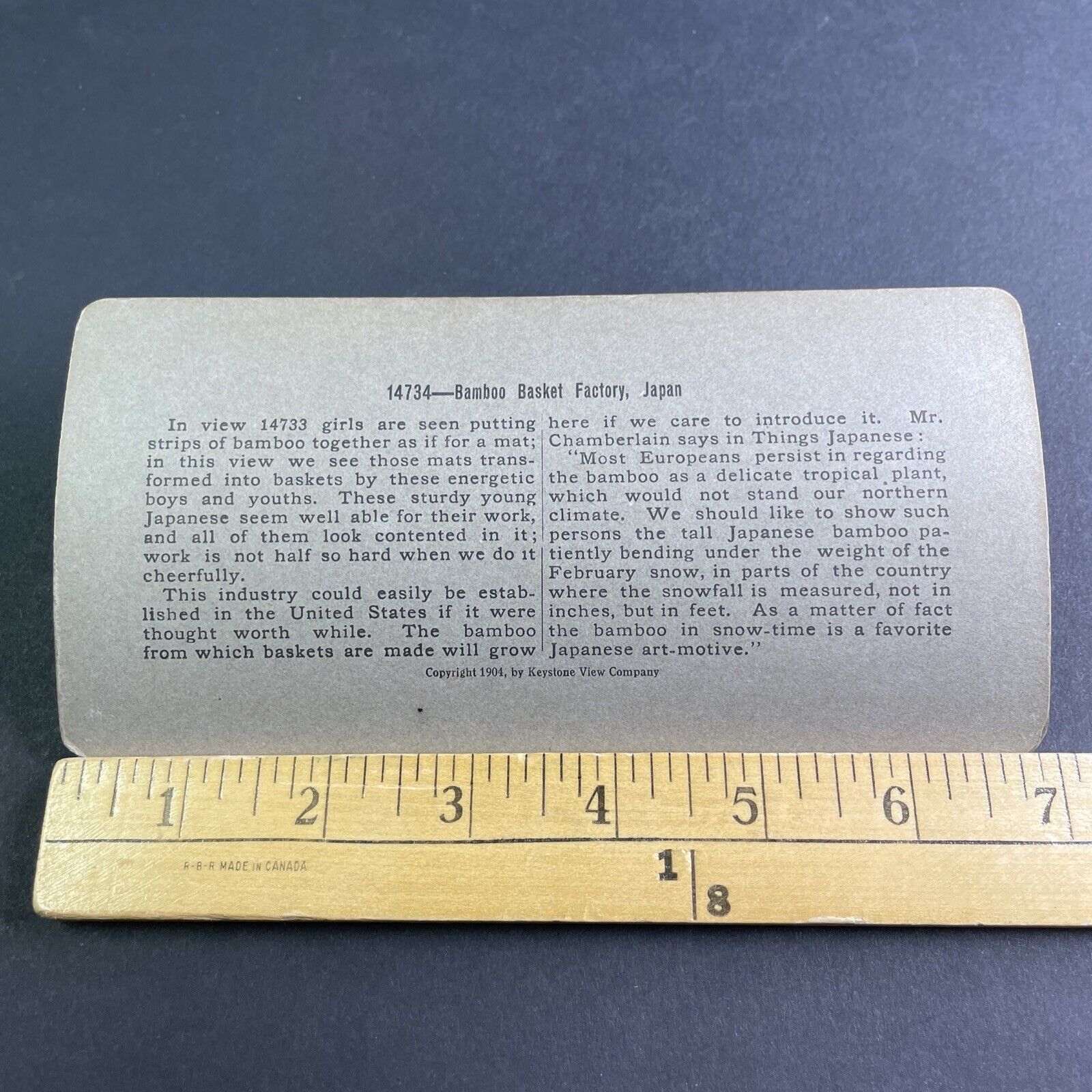 Antique 1904 Basket Factory Yoshiwara Fuji Japan Stereoview Photo Card P2156