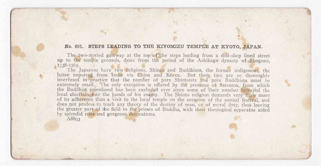 Antique 1904 Worshippers At Kiyomizu-Dera Temple Kyoto, Japan Stereo Card P292. Rare.