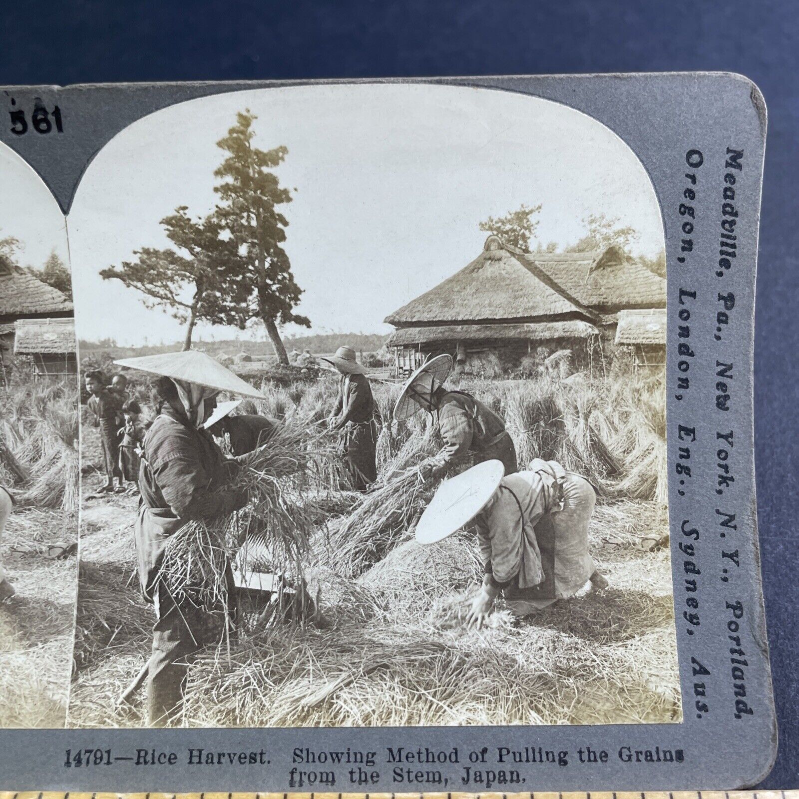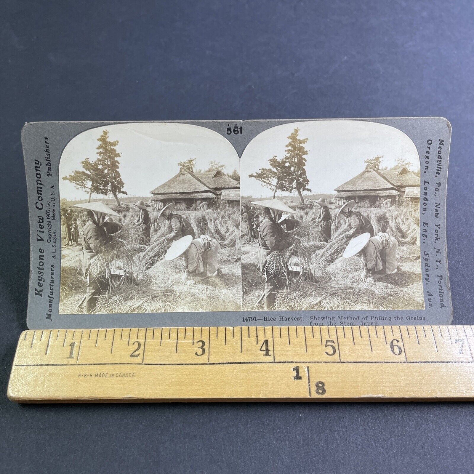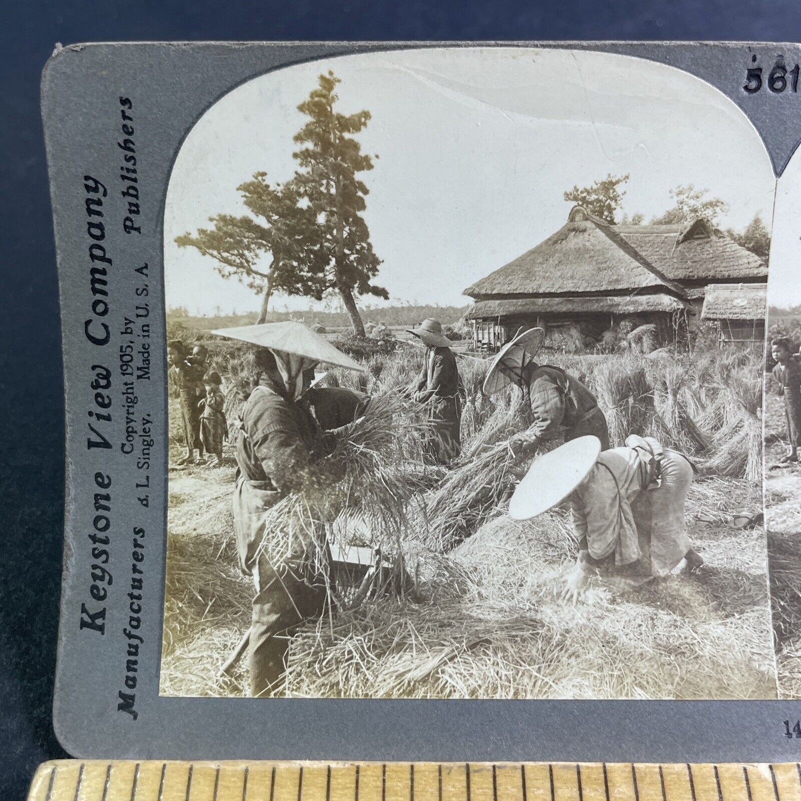 Antique 1905 Farmers Harvest Rice In Japan Stereoview Photo Card P2179