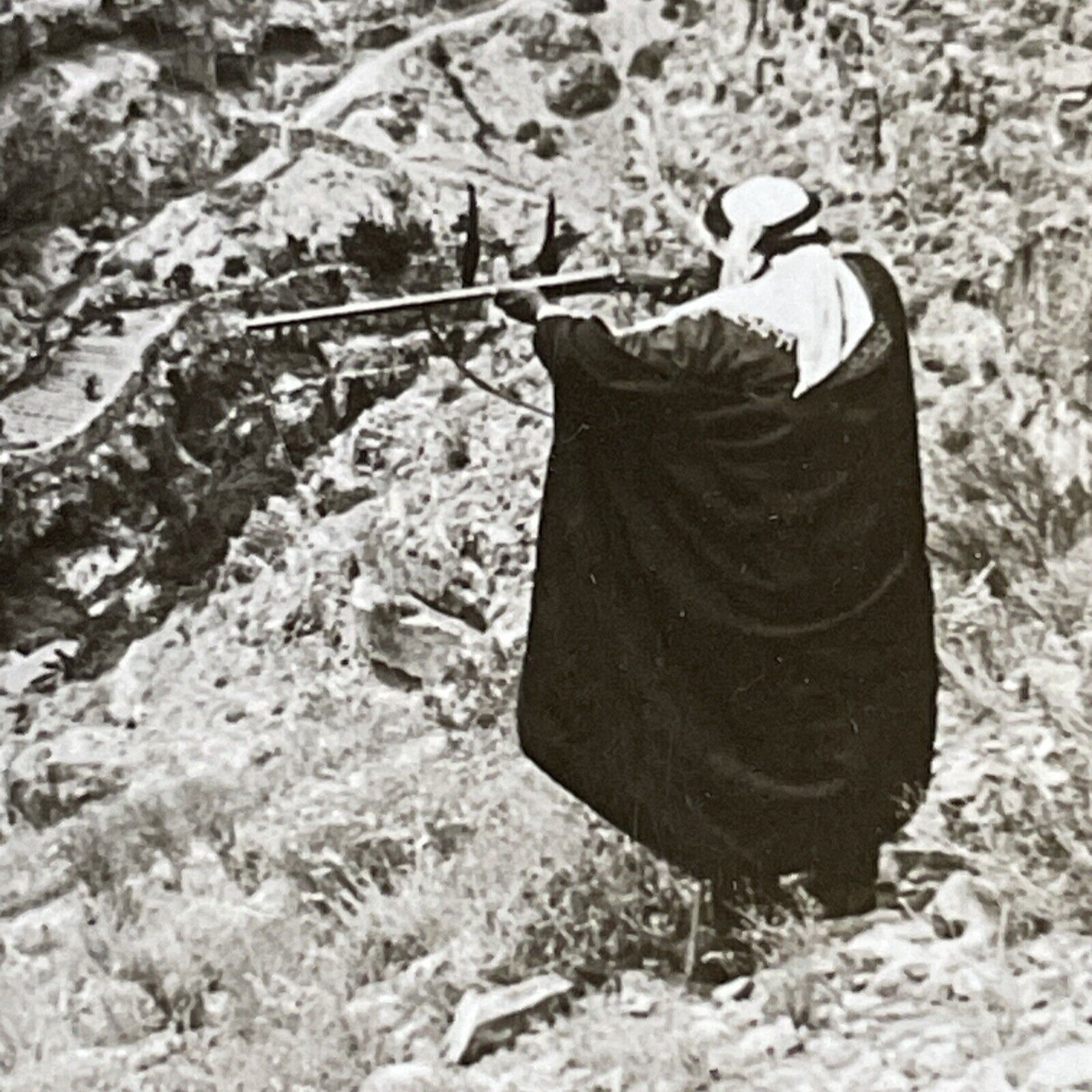 Antique 1906 Muslim Man Hunting In The Desert Israel Stereoview Photo Card P4411