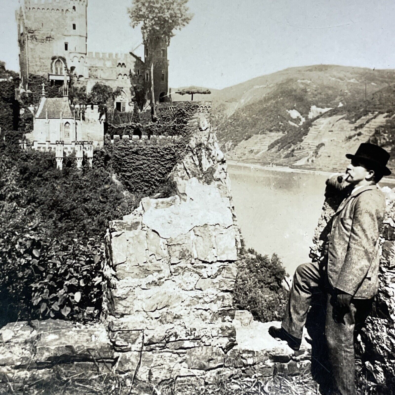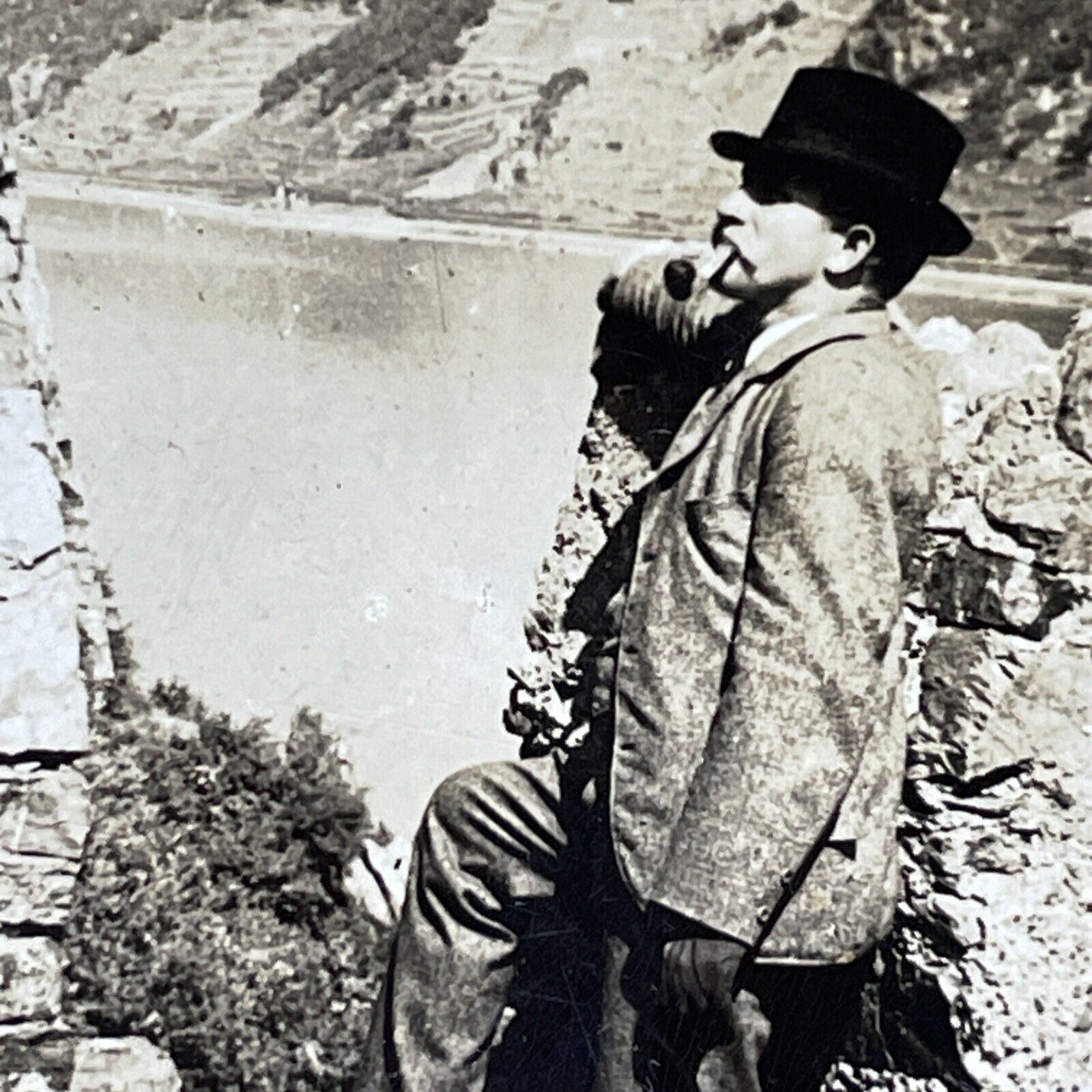 Antique 1909 German Man Smoking A Pipe Stereoview Photo Card V2863
