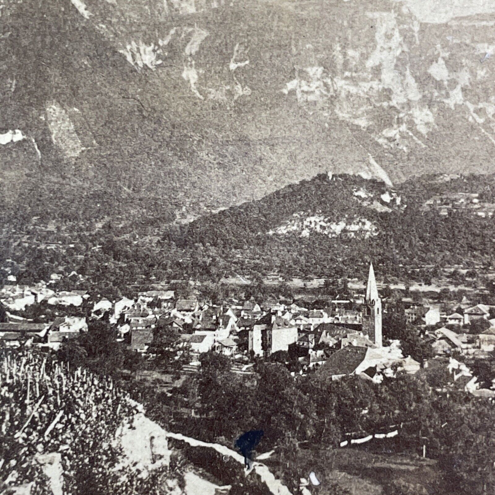 City Of Bex Switzerland Stereoview RARE EARLY PHOTO Antique c1855 X3671